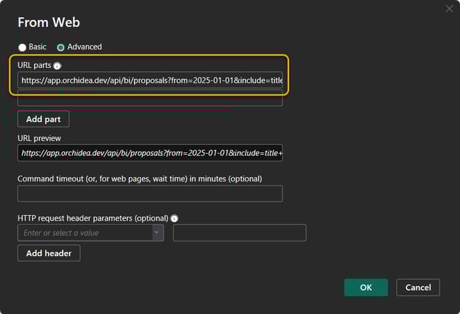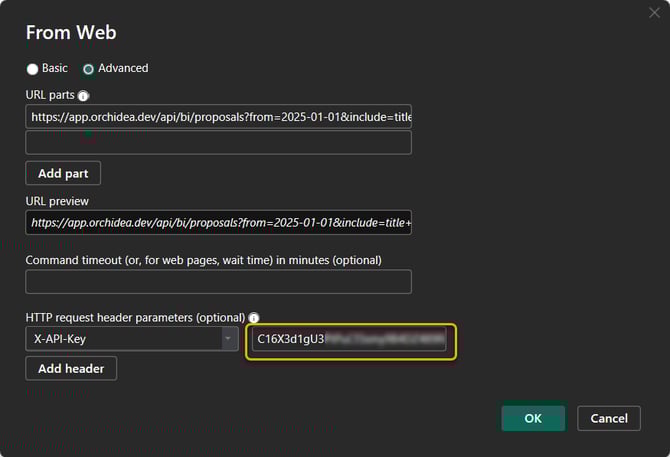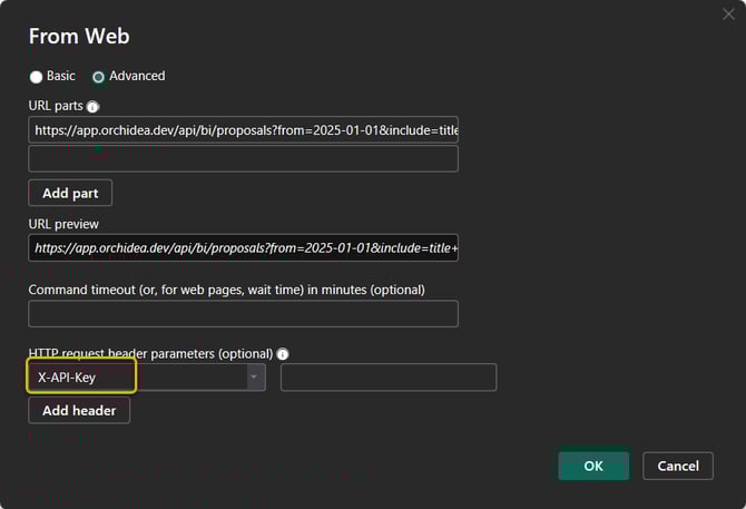 - Click OK to add Orchidea as a data source to Microsoft Power BI.