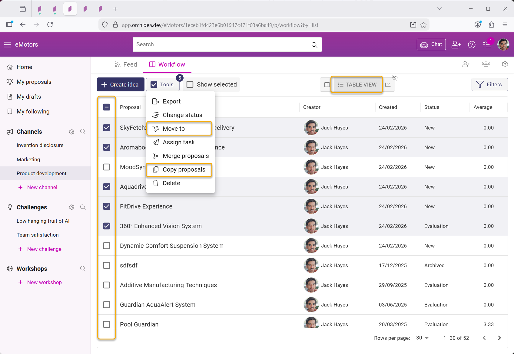 Copy or move one or several proposals to another channel, challenge, or workshop